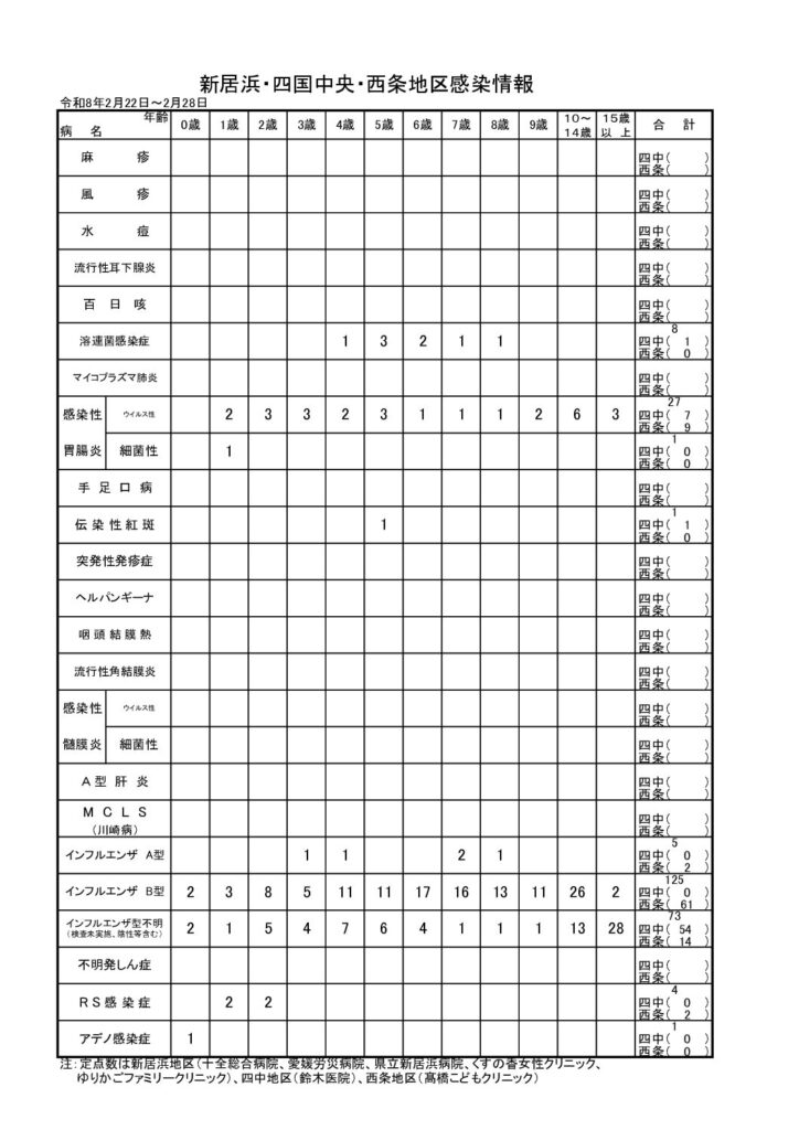 新居浜・四国中央・西条地区感染情報